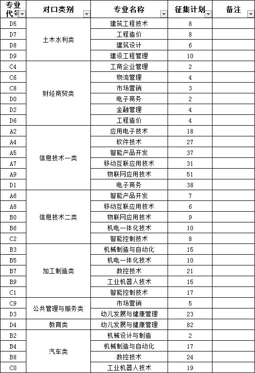 四川现代职业学院(招生代码:5191)本次征集志愿对象为对口高职录取控制分数线上未被录取的考生(各类别140分)。本次征集计划77人,各考生类别征集计划如下
