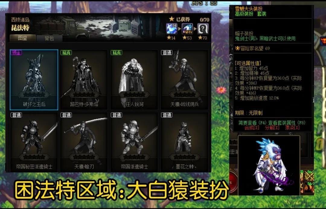 达到14颗星星可以过的材料奖励,达到53颗星星可以获得“大白猿”头部装扮,面目狰狞,看起来非常滑稽。