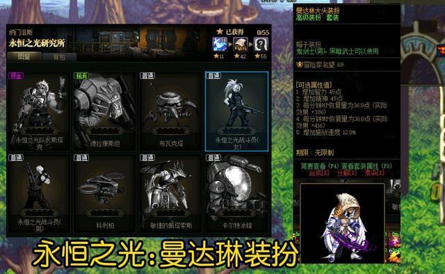 永恒之光地下城是“曼达琳”大头装扮,是一个头脑高帽的头部装扮,隐隐若显的脸庞,好像隐士高人。非常适合暗黑系职业,量身定做一般。