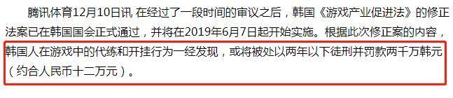 同时有网友提到了韩国代练入刑问题,去年,韩国正式将游戏代练列入了刑法,最高将面临2年的刑期和2000万韩元(约12万人民币)的罚款。