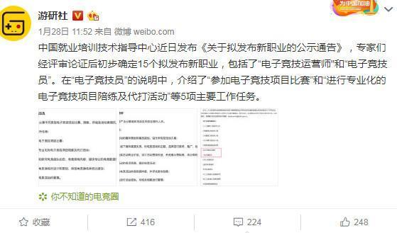 在中国就业指导中心发布的15个新职业中,电竞领域的有“电子竞技运营师”和“电子竞技员”(话说这名字不难听吗?),问题就出在“电子竞技员”的职业说明上,出现了代打的字样。