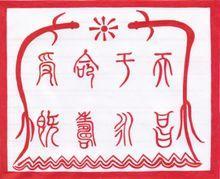 后统一天下,嬴政称始皇帝,命李斯用小篆雕刻传国玉玺,正面刻有“受命于天 既寿永昌”八字、环刻“双龙戏珠图案“、最下面有三道尖波浪线(代表大海)、双边(内边线较细、外边线较粗)。传国玉玺整个图案的寓意是:日照大海现双龙。这一玉玺,是中国历代正统皇帝的信物。