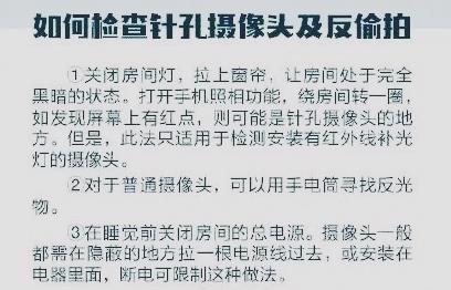 郑女士和丈夫的遭遇,也提醒了同样在外租房住的情侣、夫妻等,租房入住之前,还是应该仔细检查一下屋内是否藏有非法安装的针孔摄像头,“扫雷”后再住,这种防人之心还是要有的!您有过被偷拍的时刻吗?欢迎在评论区和大家交流,希望大家都能保护好自己的隐私!