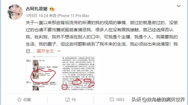 就在所有人都以为这件事是假的时,古阿扎竟然向广大网友亲口承认了。古阿扎发微博回应视频门事件称仅有三部是真实的,而且视频流露出来都是因为与渣男分手所致,陷入“视频门”让她感到非常羞耻,私人生活都受到了严重影响,希望网友不要再管她要福利,她现在只想回到正常的生活,虽然现在很怕去交新的朋友。