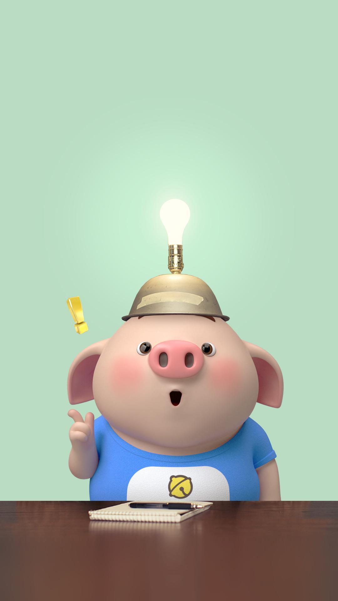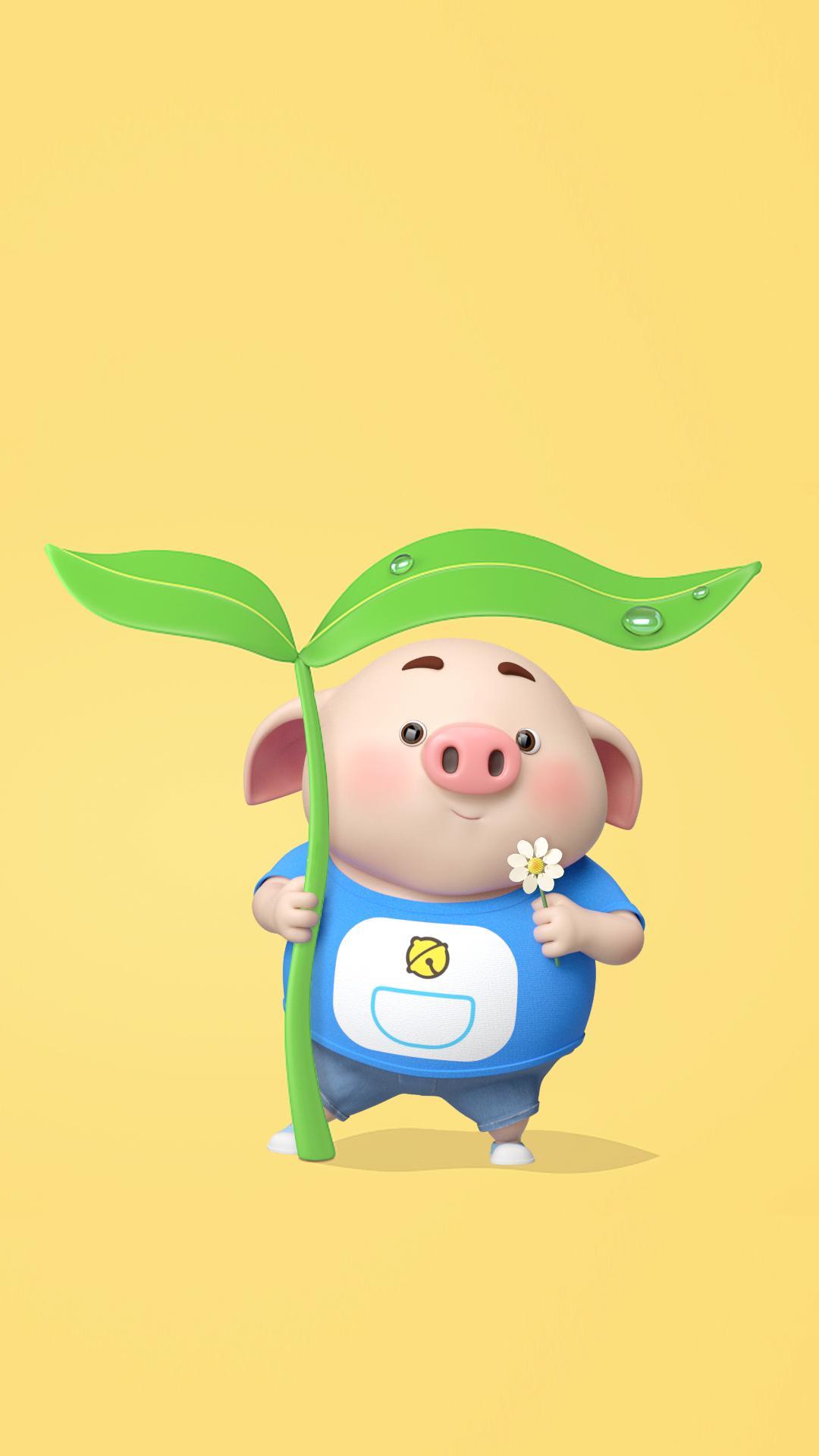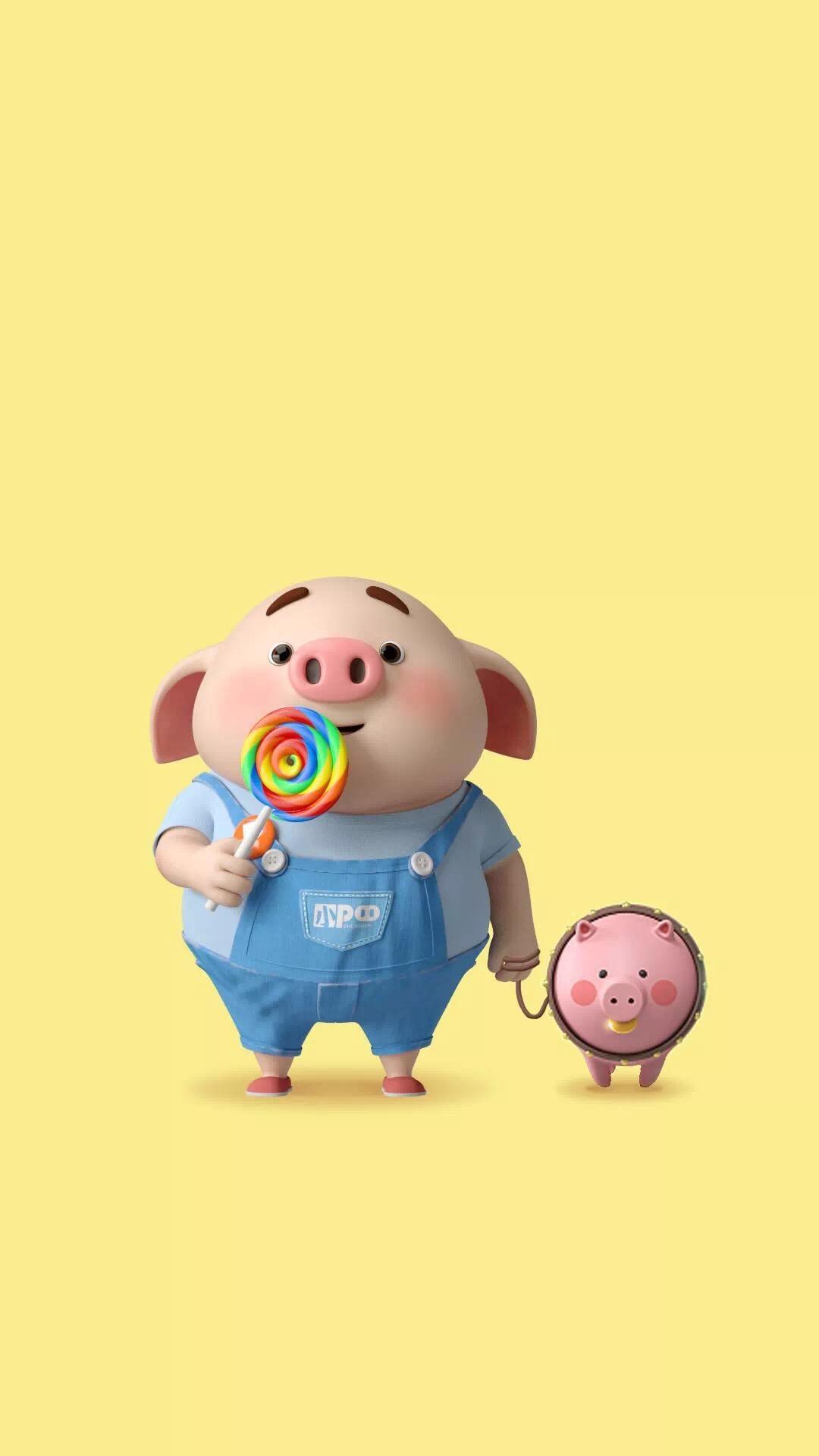手机锁屏壁纸丨小清新风呆萌猪小屁壁纸,纯色更萌哦~