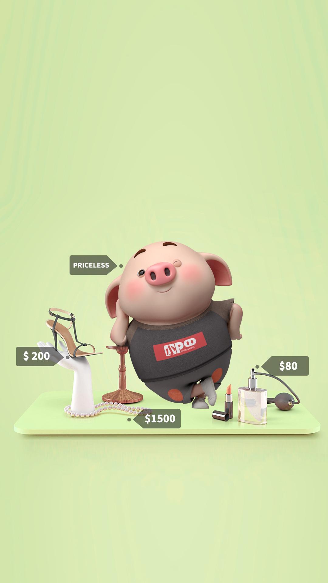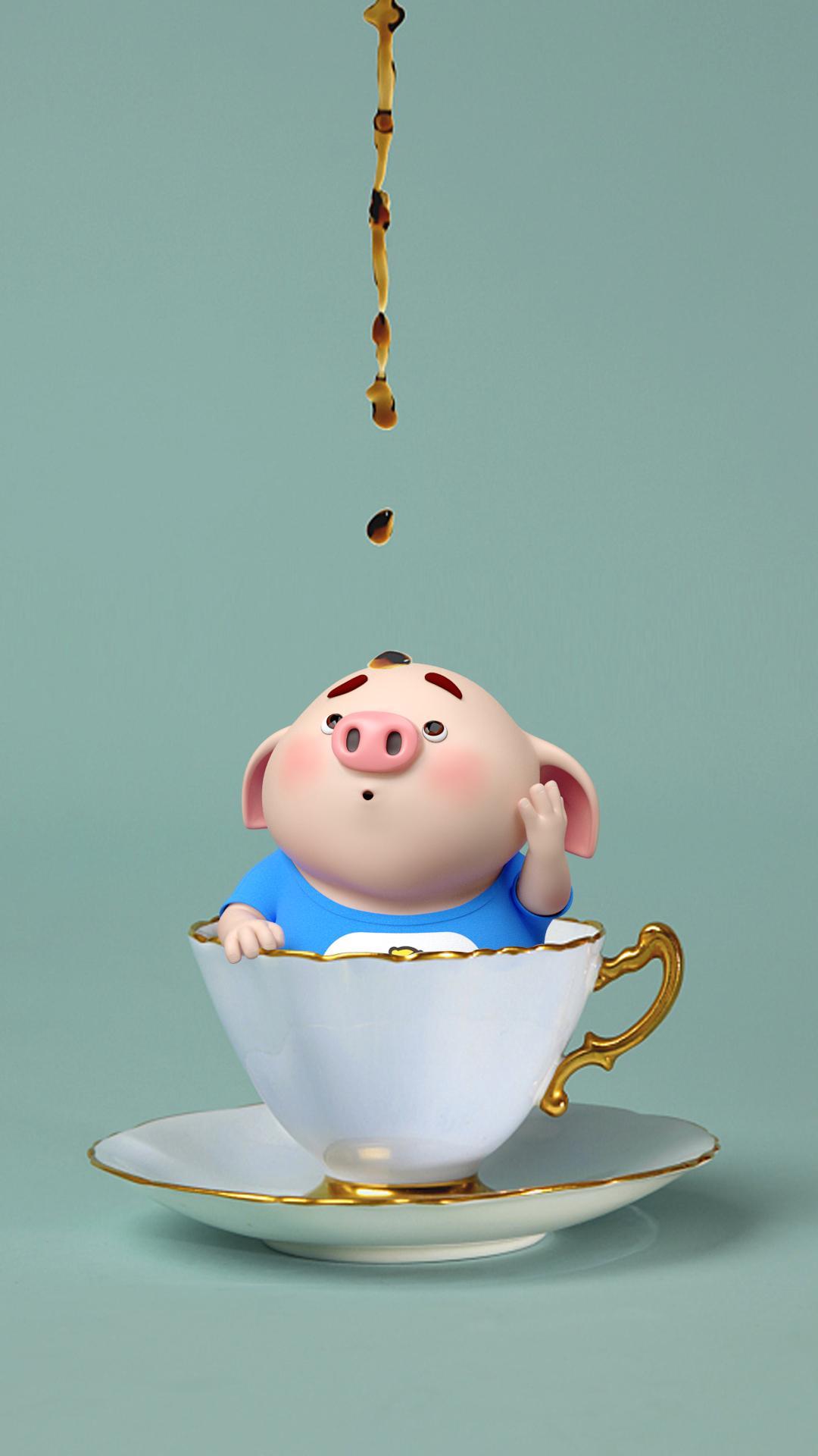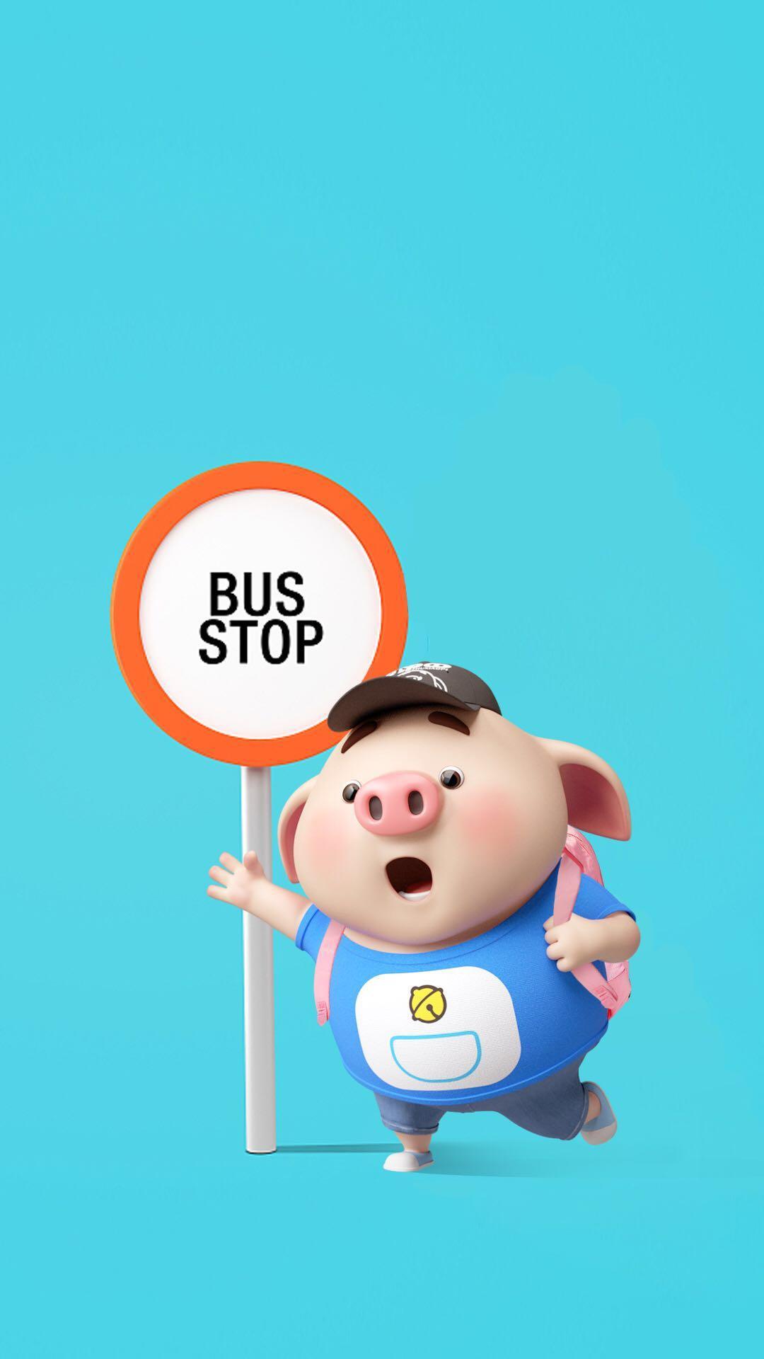 手机锁屏壁纸丨小清新风呆萌猪小屁壁纸,纯色更萌哦~