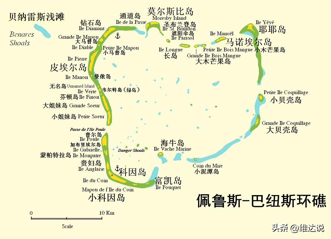 佩鲁斯-巴纽斯环礁中的岛屿分布图