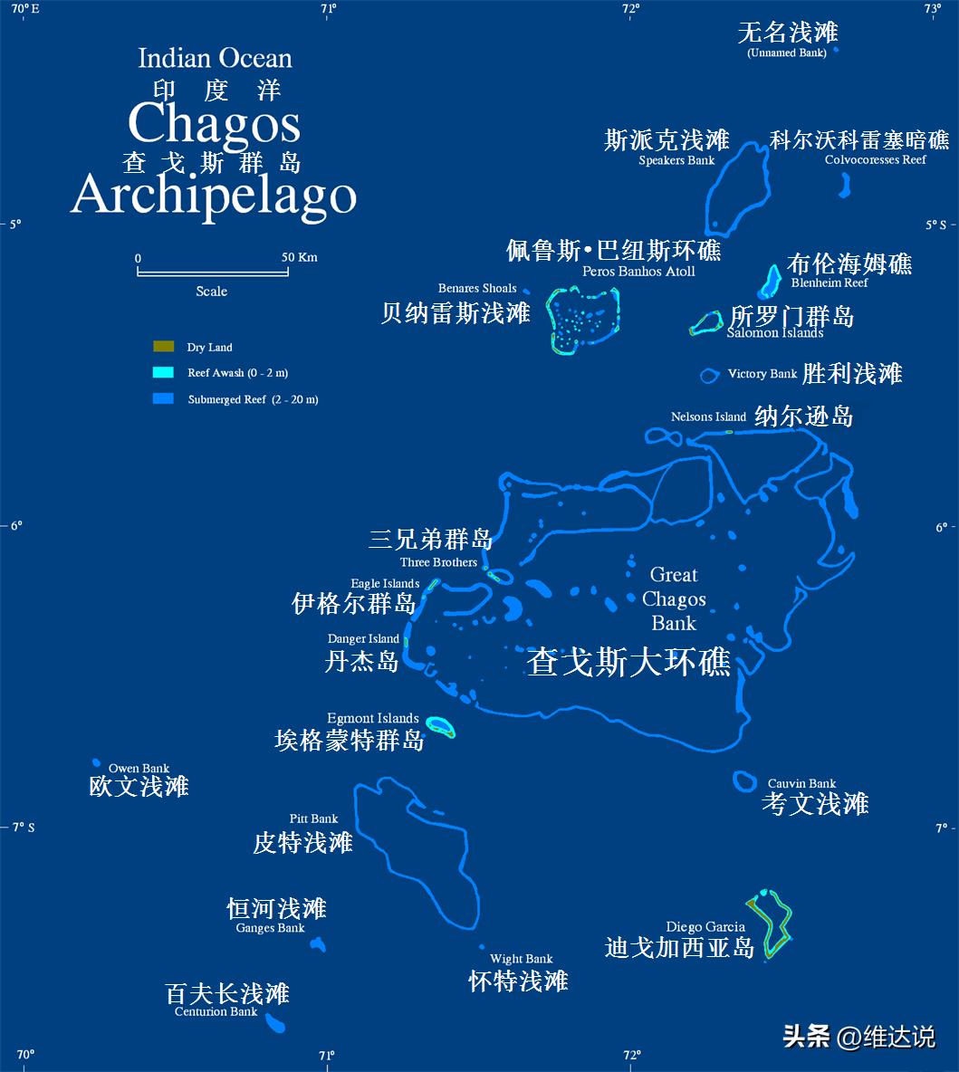 查戈斯群岛位于马尔代夫以南600余公里,因美军的迪戈加西亚岛军事基地而闻名世界。