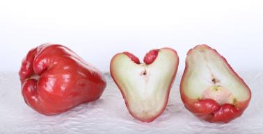莲雾。又名天桃、水蒲桃、洋蒲桃。果肉海绵质,略有苹果香气,味道清甜,清凉爽口。品种有乳白色、青绿、粉红、深红色。确实有点像苹果味儿。