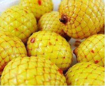 刺梨,看起来像黄色的小河豚。果肉脆,成熟后有浓芳香味。果实内含有丰富的维生素C,被称为“维C之王”。