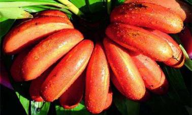 南洋红香蕉,颜色粉红、皮较厚;果肉蛋黄色,肉质细腻,含糖高、香气浓、口感好,有特殊的兰花香味。营养也十分丰富,维生素的含量极高。红皮香蕉的产量极低,一般几十车的帝王蕉里才能出一箱红皮香蕉,价格很高。