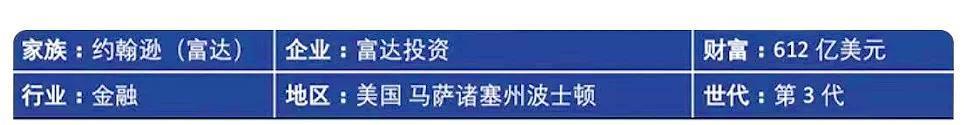 波士顿共同基金帝国由爱德华C约翰逊二世,于1946年在波士顿创立。现由其孙女阿比盖尔经营。这家控股公司通过推出零费用比率基金和建立数字资产部门,来应对从主动管理型基金转向低成本指数基金的转变。约翰逊的家族办公室Crosby位于新罕布什尔州。