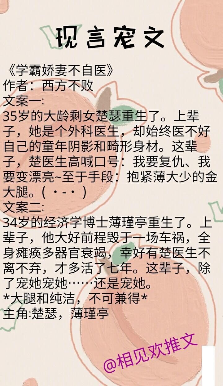 简评:哎呀,这本小说是双重生文,看了特别爽,男女主一个是医学天才,一个是商业奇才,强强互宠,一起虐渣。前世男主因为被陷害而出车祸,女主是他的主治医生,多次把男主从死亡线上拉回来,但是最终也只是延长六年生命,男主在和女主告白后还未得到回应就逝世了;女主一直被后妈暗中下药吃了太多糖皮激素而终身肥胖,毁了她的容貌和身材,女主后来在医院因为急性胰腺炎离世,重生回了高中。女主重生回来后,立即着手报复,首先把被下药的米饭还给后妈的两个孩子吃,爽!其次,不再为了躲避继母迫害而压抑自己的聪明才智,大展拳脚,去哈佛读医,最终拿了诺贝尔医学奖,酷翻了有没有;而男主呢,一重生就转学到女主高中,两人确认过眼神,都是重生的人,就一起虐渣,顺便谈甜甜的恋爱吧!这本文情节有点玛丽苏,但真的很苏爽,很甜宠!