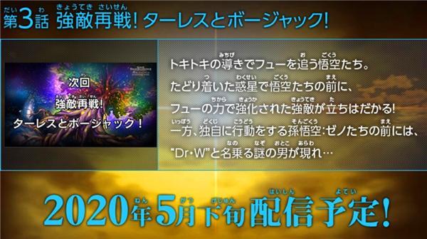 超龙珠英雄动画“宇宙创成篇”第3集预计2020年5月下旬更新,其实也是超龙珠英雄动画总和的第23集,标题为“再战强敌!达列斯和波杰克!”,孙悟空和贝吉塔等人在时时鸟的帮助下,知道了弗的下落,孙悟空一行人前去追弗,当孙悟空到达一个星球后,没有找到弗,反而遇到了强大的敌人。正是标题上的两个人,分别是达列斯和波杰克。