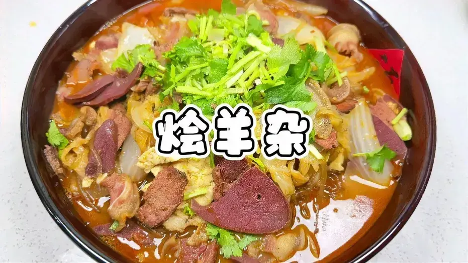 2. **烩羊杂碎**:这是宁夏非常有名的传统美食,所使用的材料非常多,包括羊头肉、羊肚、羊心、羊肠等,食材放在一起煮成浓汤,再撒上香菜和辣椒油。