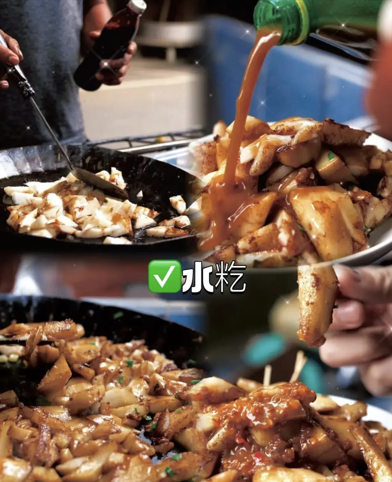 水粘是以大米碾碎后催至而熟,淋上酱汁和香油,咸甜适中,独有韵味。吃起来爽口香甜,就连鼻腔内也充满大米独有的清香~