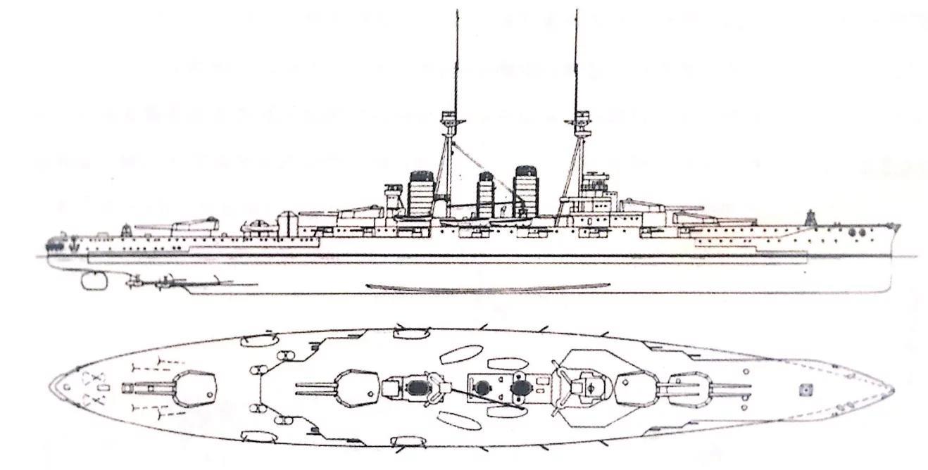 日本海军第一级无畏舰是从英国维克斯公司订购的金刚级战列巡洋舰,金刚级战列巡洋舰已英国“虎”号战列巡洋舰为原型,首舰“金刚”号由维克斯公司建造,后续三艘由拿到图纸的日本自行建造。“金刚”号1911年在英国维克斯巴罗—因弗内斯造船厂开工,1913年8月16日竣工。设计标准排水量27500吨,满载排水量32200吨,舰长214.6米,舰宽28米,吃水8.4米。动力为四台帕森斯蒸汽轮机,36座舰本式油煤混烧锅炉,航速27节,续航力8000海里/14节。由于继承了英式战巡的设计,舰体防御教为薄弱,主装甲带203毫米,水平装甲最大70毫米,主炮塔正面229毫米,侧面152毫米,司令塔267毫米。武备为8门四一式356毫米主炮,四座双联装布置。侧弦布置有16门152毫米炮廓炮,并布置有水下鱼雷发射管。金刚级四舰在1923至1936年进行过多次改装,包括改善装甲和水下防护,提高主炮仰角等。在1936年完成改装后,航速已提高到30节,舰种由战列巡洋舰变成高速战列舰。
