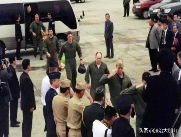 这是何等的讽刺——4月12日,4名美侦察机机组人员乘坐包机归国,并受到时任美国总统小布什的高调接见,犹如英雄一般热烈欢迎。撞机“杀人”的机组成员反而成了立功者!