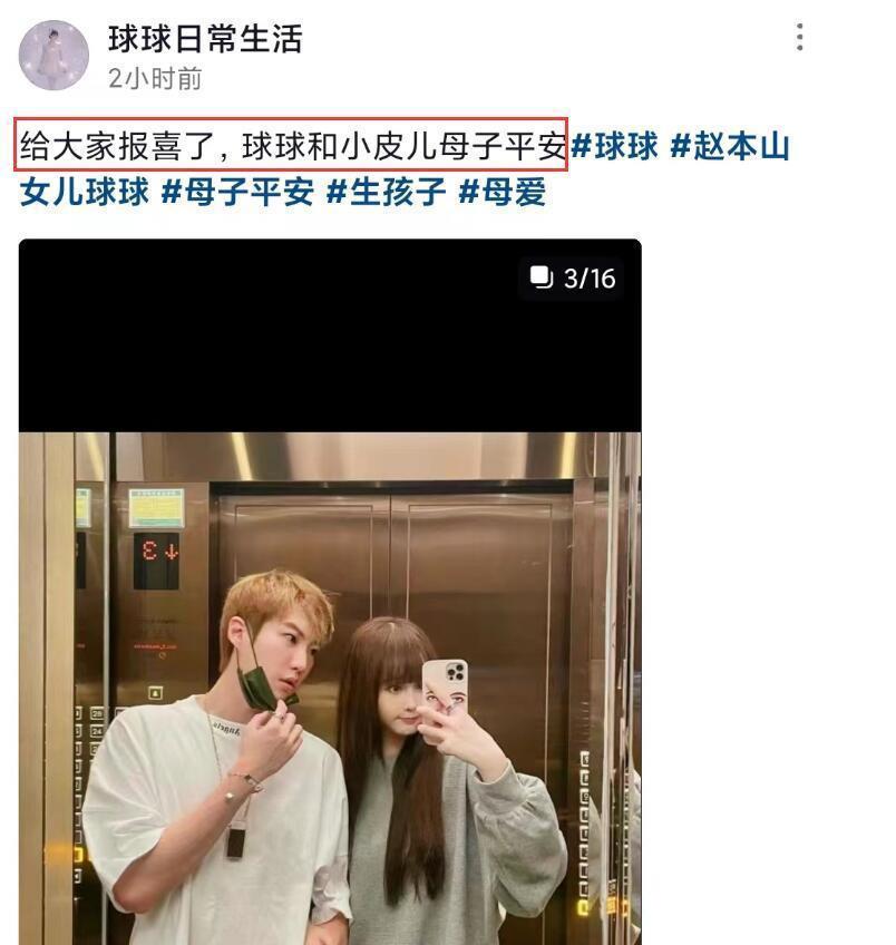 赵本山女儿球球顺利生产