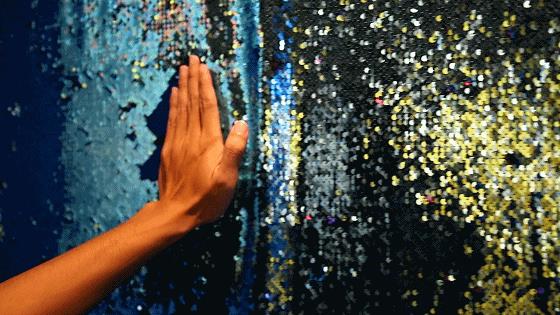 这面bling bling的闪光墙是展馆必打卡的地方,手轻轻拂过就会翻出另一面的色彩,就像翻开你内心的另一边。