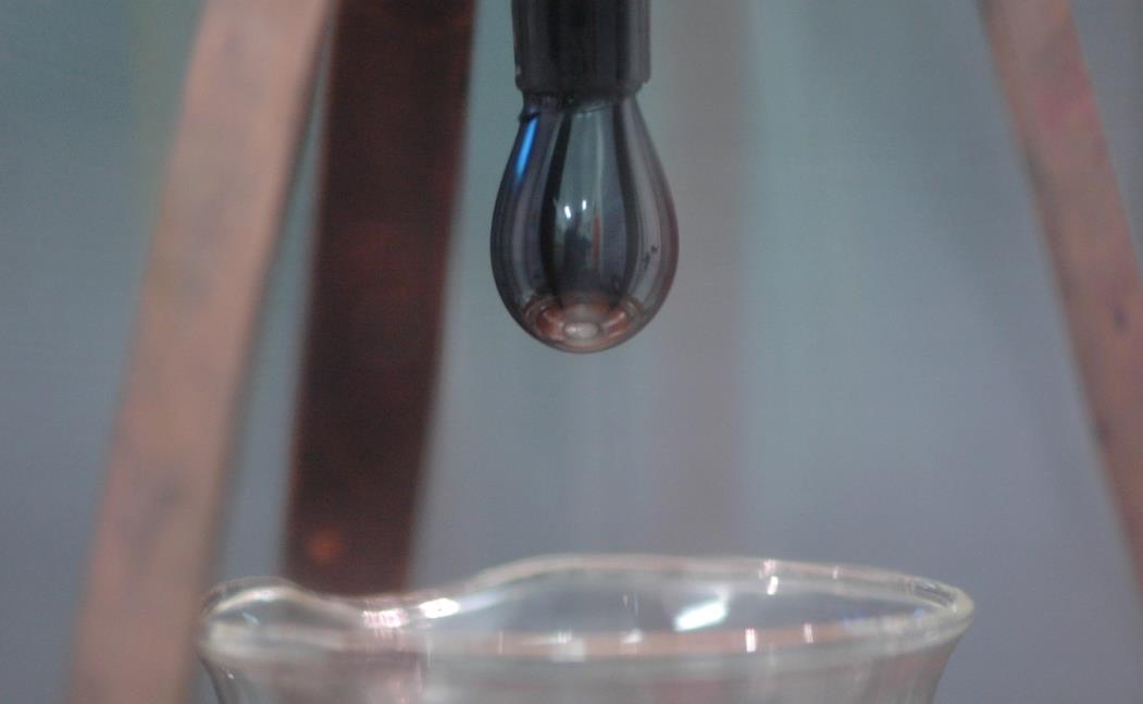 结果就在更换装置的时候不小心碰撞到了滴落装置的支架,第九滴沥青很意外地在这次人为事故中滴落。
