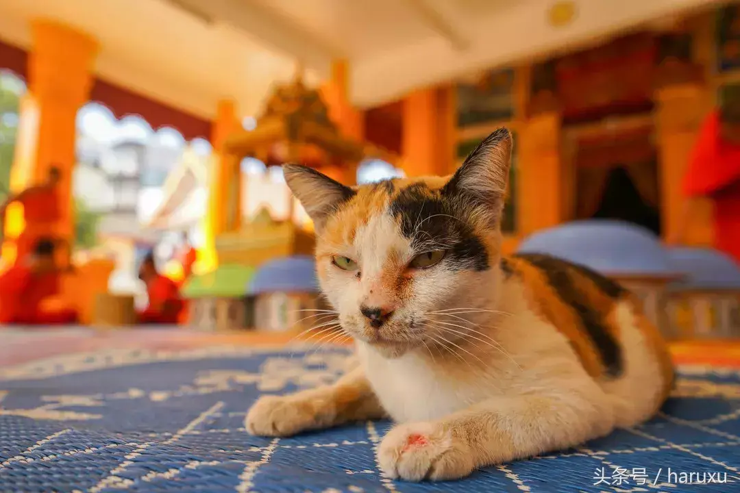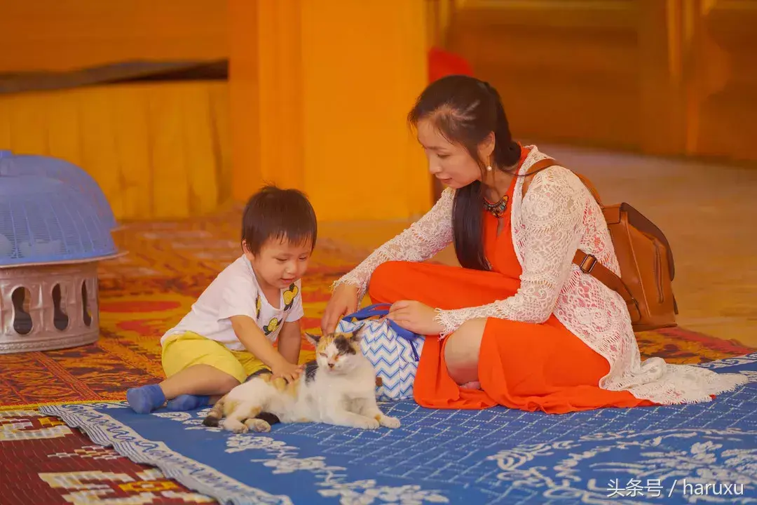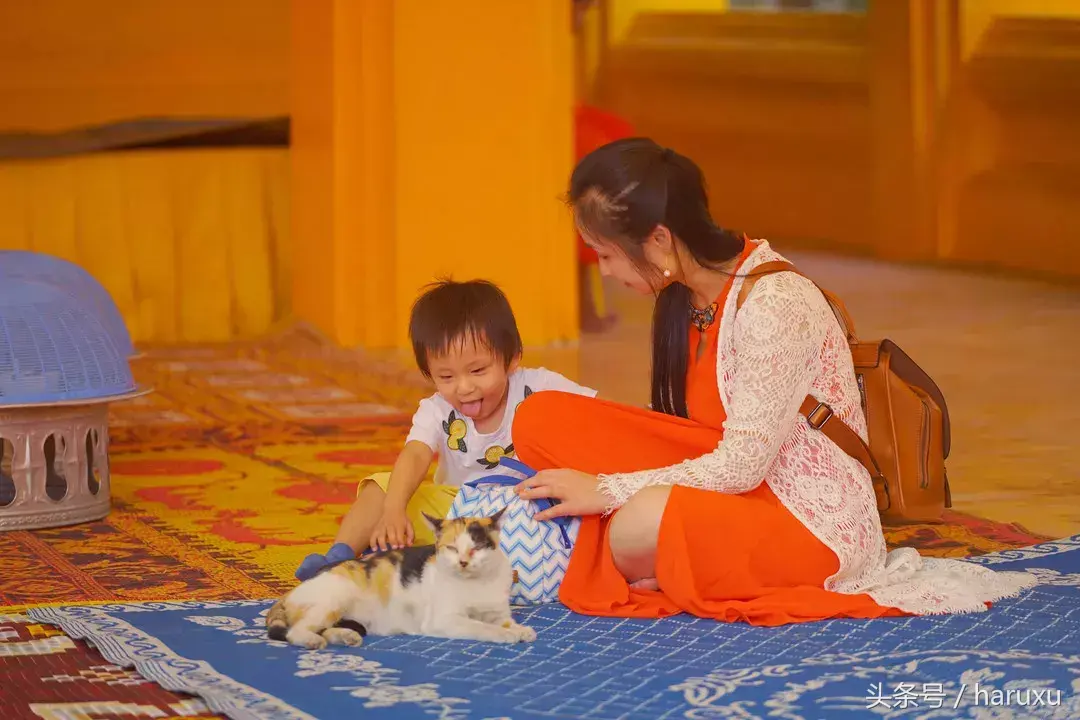 米赛寺的这猫咪像是得道了一般,完全不畏生人,很是沉得住气,不走不跑,享受元宝的抚摸。