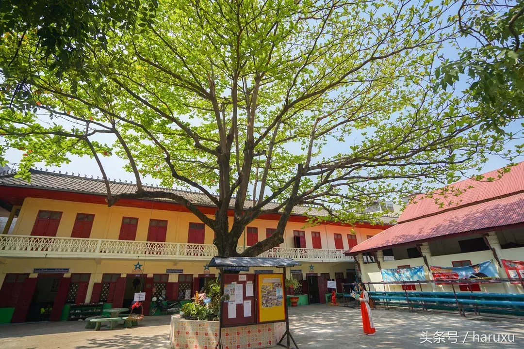 当我们走到另一边,才发现米赛寺别有洞天,里面居然有所小学,两层小楼,树荫华盖。
