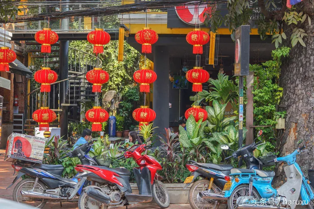 有不少华人开的餐馆、店铺,春节期间也遵从华人的习俗,张灯结彩。