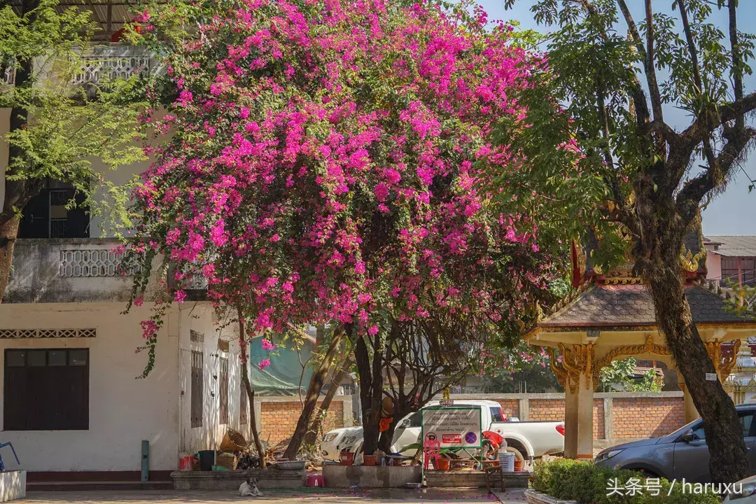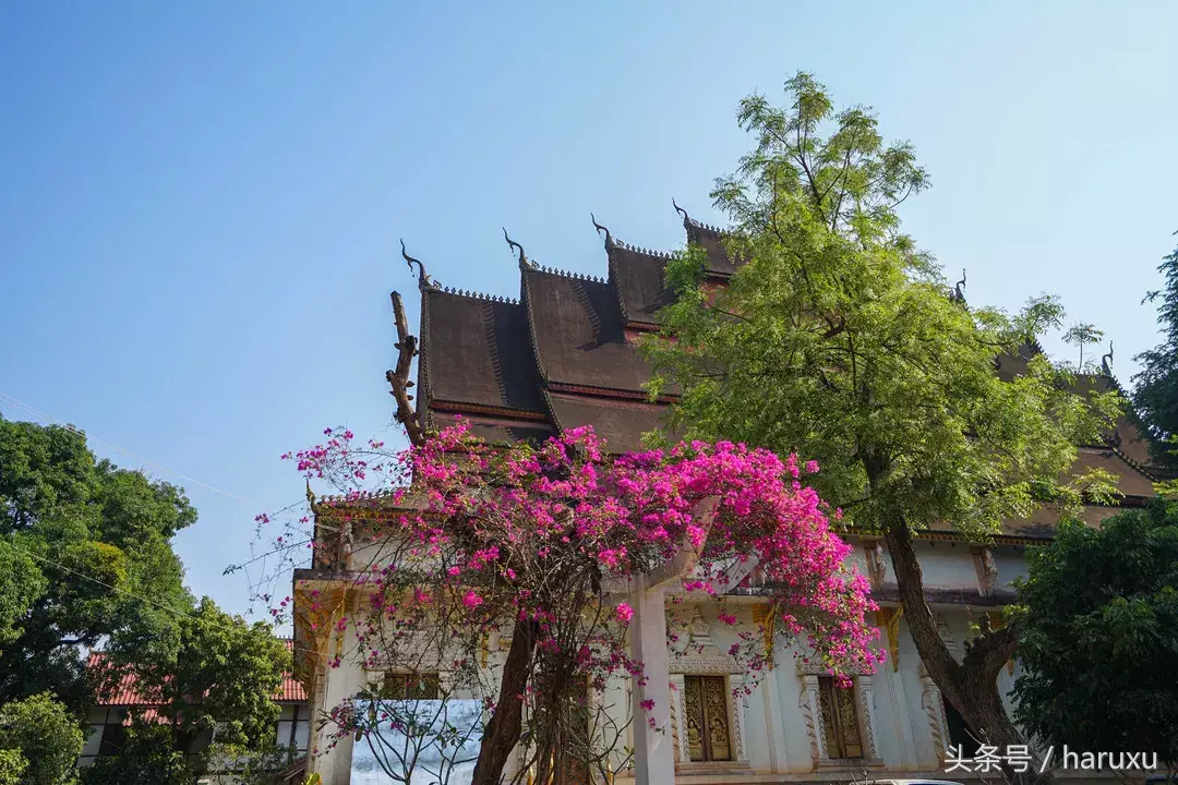 去翁得寺完全是个偶然,去万象之前我对其并不知晓,各大旅行指南对它的介绍也甚为寥寥,不过是只言片语,连照片也少得可怜,它就在下榻的酒店附近,怒放的三角梅与古朴的寺宇相得益彰,脚步不自觉停下来,想一探究竟。