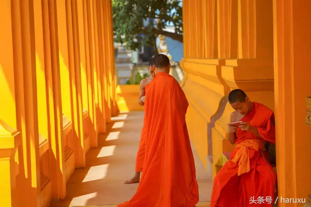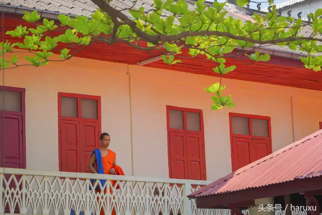 不时有僧侣走过,一身橙衣,缓步而行,偶尔对视,露出真诚而腼腆的微笑。