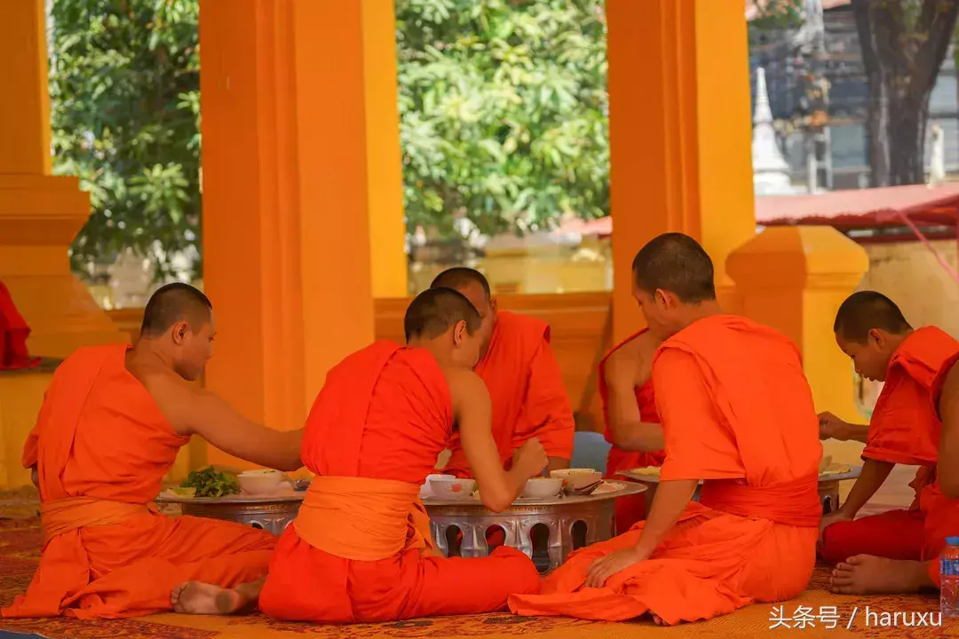 老挝僧人的午饭时间较早,才11点不到,就进入了享用斋食的时间,大概仍保持着小乘佛教里“过午不食”的戒律。