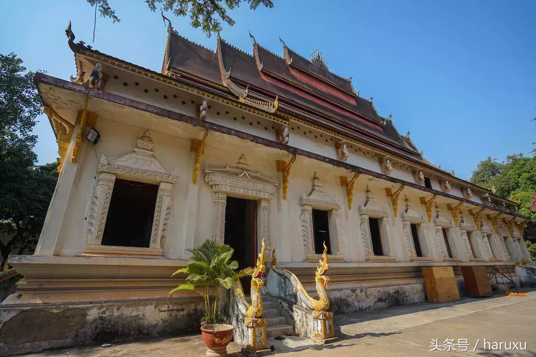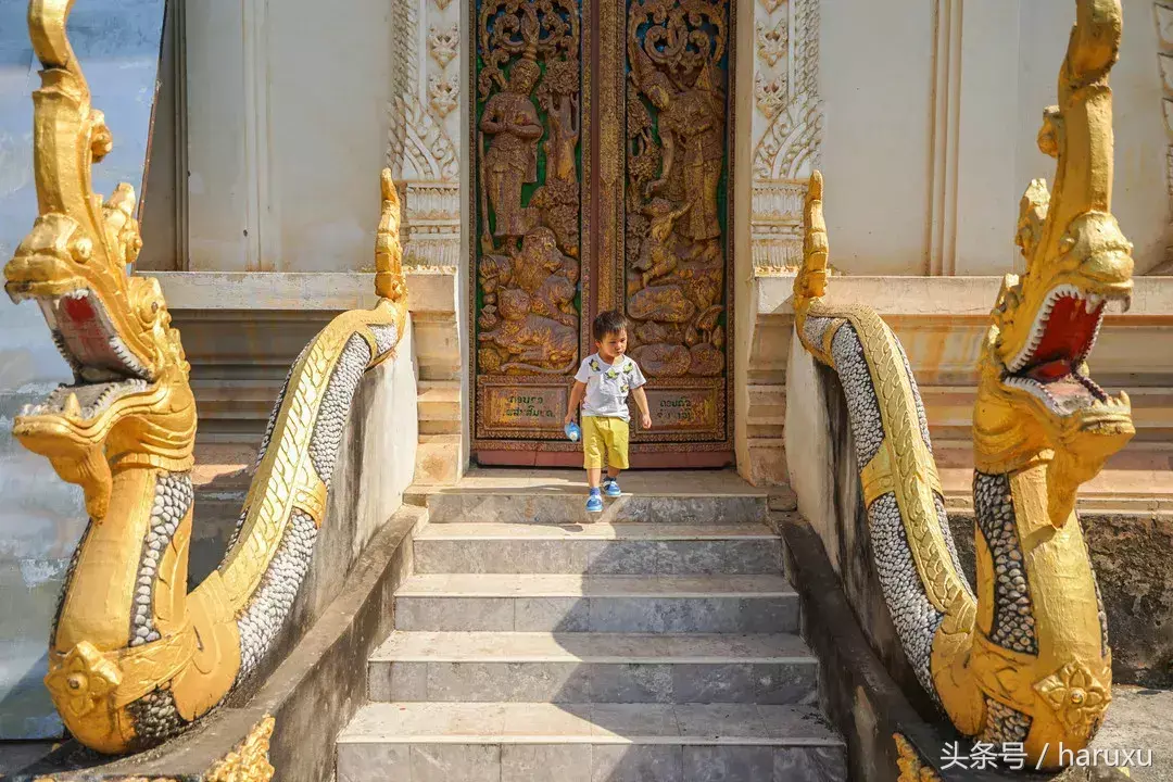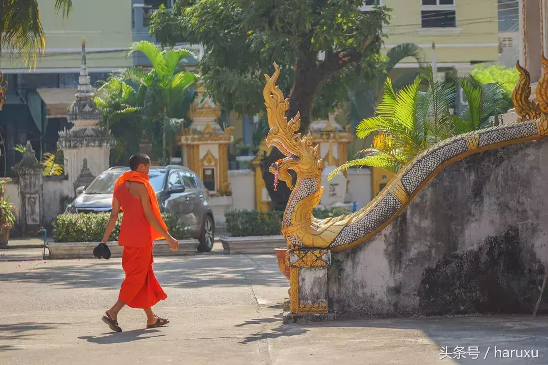 不收门票,只有零丁两三个游客,与国内寺庙动辄人头攒头的现象形成显著对比,就外形而言,老挝寺庙的风格与泰国、柬埔寨、缅甸的风格神似。