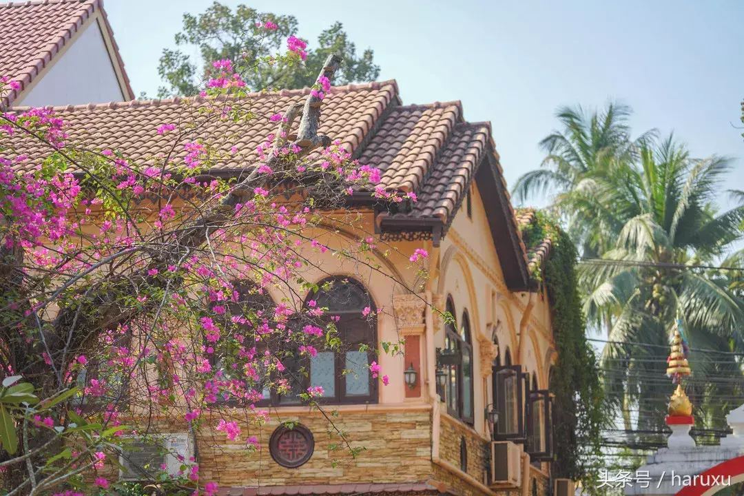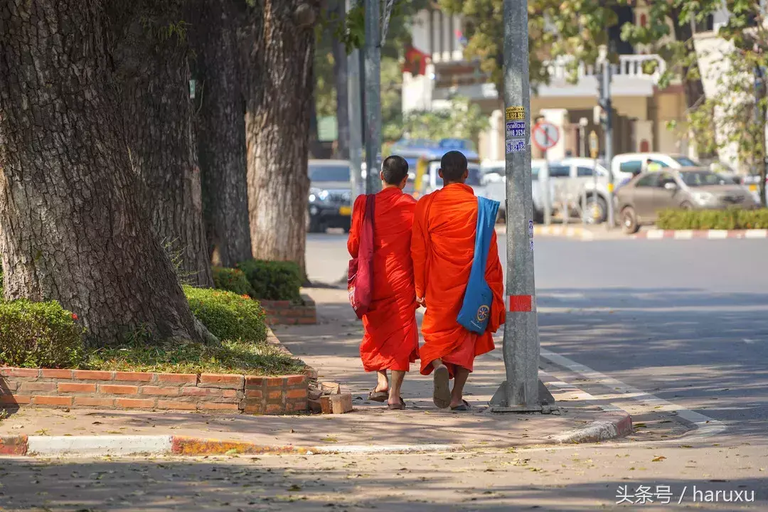 一切的一切,与绿丛中隐现的寺庙佛塔,瓦房里飘出的咖啡香,身着花边筒裙、橙衣僧袍的行人异常契合……