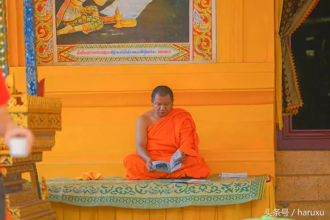 东南亚一年四季但凡天晴往往暑气逼人,奇怪的是寺庙没有空调,却毫不闷热,四面通风的廊台甚至不乏凉爽,大殿门外,一位略上年纪的僧侣颇有几许得道高僧的味道,不为外界所动,虔诚翻阅经书,自有他的灵魂世界。
