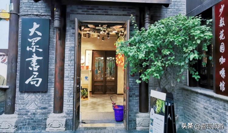 弹子石老街大众书局,坐落于重庆长江会弹子石老街的一个四合院里,面积约1000平方米,里面有藏书10万余册。室内外设计处处都以书为元素,融入了重庆特有的山水桥梁、竹编艺术元素文化和古朴的四合院布局等,同时夹杂工业风元素,使书局在拥有文化底蕴的同时,还附加以高颜值。而且书局在功能上不仅可读书、买书,还有接近一半是咖啡厅,还有儿童游乐的地方,在这个四合院的中间,类似于天井的地方,摆着几个秋千,可以在这里看书,也可以拍照。