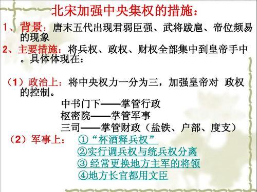 宋太宗淳化元年(990)十二月,中外所上书疏亦如之。”可见北宋三司至此开始成为北宋国家运行的“财、政、军三权”之一。宋真宗大中祥符九年(1016),宰相王旦回答皇帝是否恢复尚书省制度时说:“今之三司即尚书省,故事尽在,但一毫所赋皆归于县官而仰给焉,故蠲放则泽及下,赐与则恩归上,此国家不易之制也。”尚书省是盛行于隋唐的国家事务职权部门,王旦所言有些言过其实,但却道出了北宋三司的制度定位。北宋三司居北宋国家财政之重,事务职权之要,在三司运行过程中对其他国家机关及官吏的监察则是题中之义了。实际上,北宋朝廷通过各种立法形式明确规定赋予三司以监察职权。
