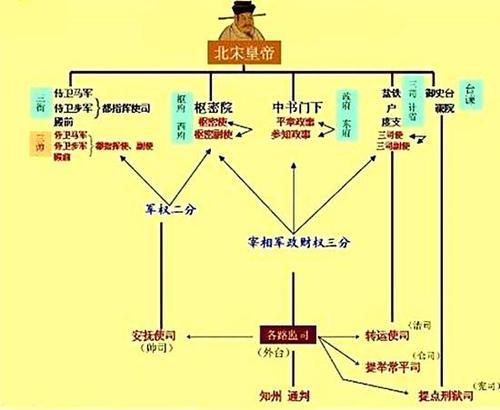 北宋三司由度支、盐铁、户部三部构成,三司使一人统领,辖下有三部副使各一人,判官、推官、孔目官、勾押官、勾覆官数人。三司下属机构有勾院、都磨堪司、都主辖支收司、拘收司、都理欠司、都凭由司、开拆司、发放司、勾凿司、催驱司、受事司、勾当马步军专勾司、衙司、勾当粮料院等。)据《宋史》记载,北宋三司共掌事务二十案: