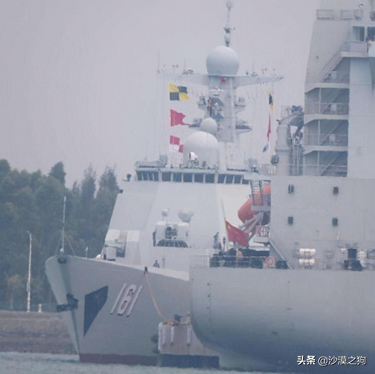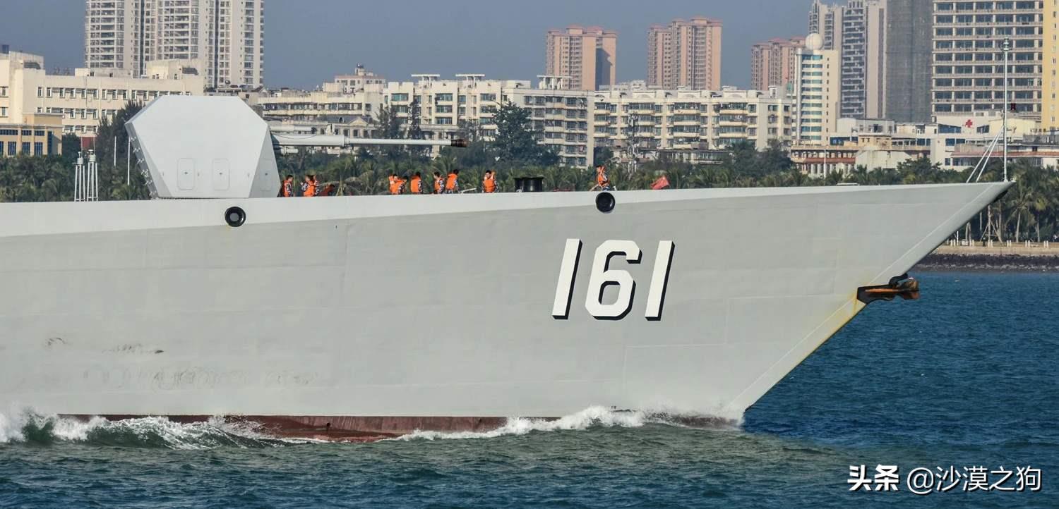 呼和浩特舰,船舷号161,该舰由位于上海的江南造船厂负责建造,在2016年12月26日下水舾装,在经过系列复杂的试验试航之后,该舰于2019年1月12日正式投入现役,隶属于南部战区海军驱逐舰某支队,驻扎在广东省湛江市坡头区某军港。值得一提的是,呼和浩特舰是该驱逐舰支队唯一一艘052D导弹驱逐舰,也是唯一一艘具备远程防空能力的舰艇,被奉为掌上明珠。