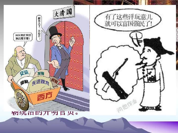 随着第二次鸦片战争后半殖民地化程度进一步加深,民族危机加剧,以及为了镇压太平天国运动,挽救清王朝统治,地主阶级洋务派开始探索救亡图存的近代化道路—洋务运动,学习西方先进技术,维护清王朝的统治。以自强、求富为口号,进行了一系列措施:创办军事工业、民用企业、新式学堂、留学生出国深造、新式海陆军等,开启了中国近代化的开端,促进我国民族资本主义的产生和发展,对外国资本入侵起到一定的抵制作用。