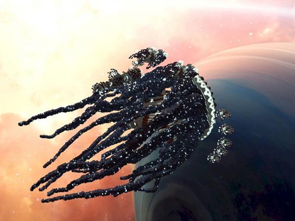 这是一个宇宙级战舰的作品,其灵感来自于水母,这个战舰的机动能力非常惊人,总是能够快速加入战斗或是撤离。它的触手上有着不计其数的各类导弹与激光武器,如果你想要击毁这艘战舰,那几乎是不可能的事情。