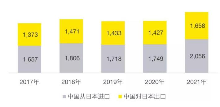 图为中日近年来的双边贸易额