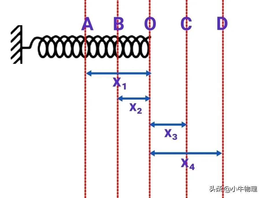 1.O→C:(原长到伸长)弹簧做负功,弹性势能增加。弹簧弹力做功-½kx₃²,弹性势能增加½kx₃².2.C→O:(伸长到原长)弹簧做正功,弹性势能减少。弹簧弹力做功½kx₃²,弹性势能减少½kx₃².3.C→D:(伸长到更长)弹簧弹力做负功,弹性势能增加。弹簧弹力做功-½k(x₄²-x₃²),弹性势能增加½k(x₄²-x₃²).4.D→C:(更长到伸长)弹簧弹力做正功,弹性势能减少。弹簧弹力做功-½k(x₄²-x₃²),弹性势能减少½k(x₄²-x₃²).5.O→B:(原长到缩短)弹簧弹力做负功,弹性势能增加。弹簧弹力做功为-½kx₂²,弹性势能增加½kx₂².6.B→O:(缩短到原长)弹簧弹力做正功,弹性势能减少。弹簧弹力做功为½kx₂²,弹性势能减少½kx₂².7.B→A:(缩短到更短)弹簧弹力做负功,弹性势能增加。弹簧弹力做功为-½k(x₁²-x₂²),弹性势能增加½k(x₁²-x₂²).8.A→B:(更短到缩短)弹簧弹力做正功,弹性势能减少。弹簧弹力做功为-½k(x₁²-x₂²),弹性势能增加½k(x₁²-x₂²).9.B→D:(缩短到伸长)(x₄>x₂)弹簧弹力先做正功,后做负功,总的做负功,为-½k(x₄²-x₂²);弹性势能先减少后增加,总的增加,为½k(x₄²-x₂²).10.B→C:(缩短到伸长)(x₂=x₃)弹簧弹力先做正功,后做负功,总的不做功;弹性势能先减少后增加,总的不变.