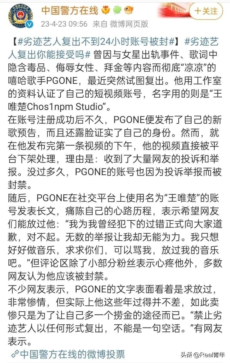 本来被下架歌曲视频,封号就已经很烦了,现在又在热搜上挂一天,又引起大家讨论,随后话题#严禁劣迹艺人随意变相复出捞金#,更像是官方给出了一个明确回答。
