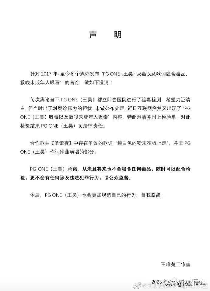 官方通报!PG One回应《圣诞夜》歌词“吸毒”争议并公布证据!