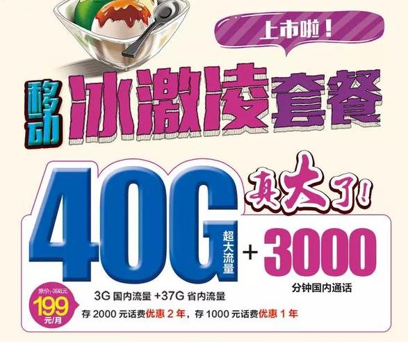 中国移动“冰激凌套餐”:40G流量,3000分钟国内通话!