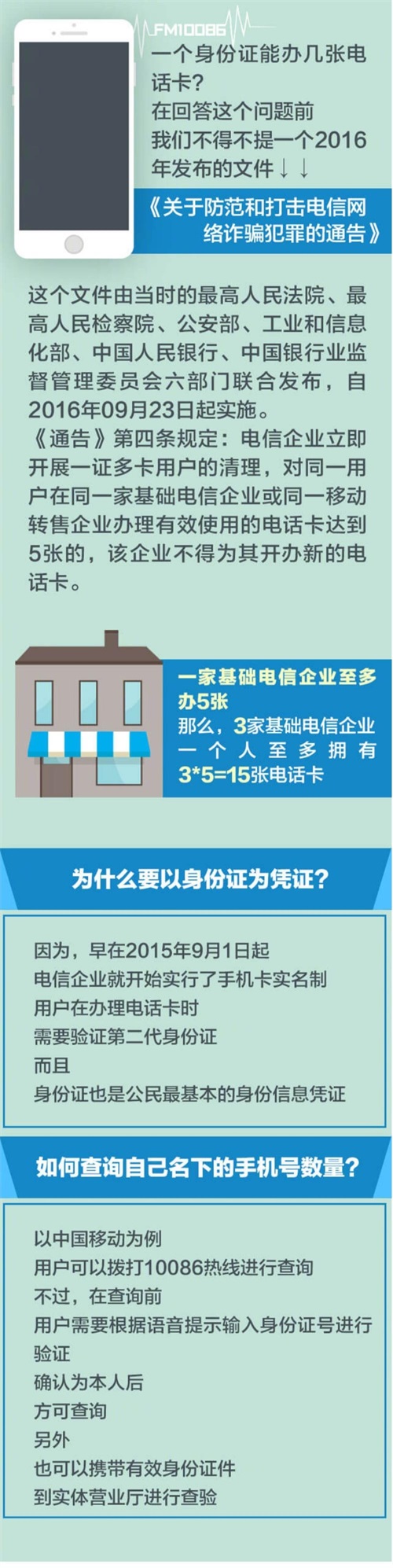 看完上面的资料后,可以发现,一张身份证,一个运营商是可以办理五张手机卡的,那么三个运营商就可以办理十五张手机卡。