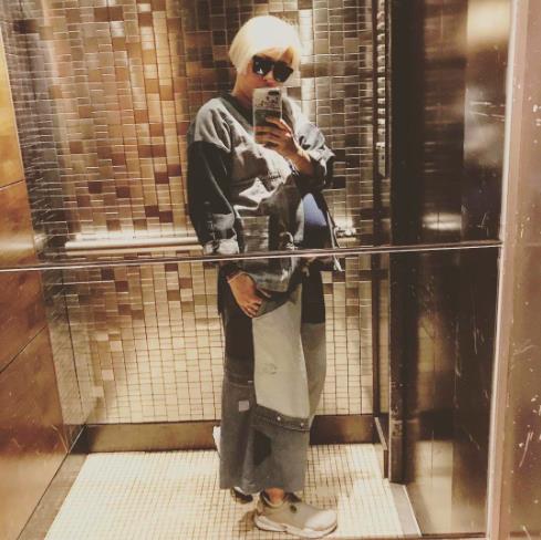 靡烂牛仔look上场,几乎型到没察觉她是孕妇。