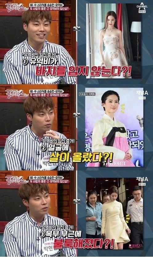 韩国节目《听到传闻Show》讨论刘亦菲可能怀孕。