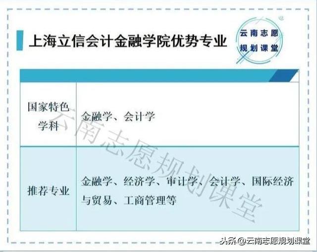 上海立信会计金融学院的王牌专业,当属会计、金融类相关专业了。其中,会计学和金融学专业是学校的两大王牌专业,审计学实力也很强,是学校唯一有硕士点的专业。会计学专业下设两个国际专业方向——ACCA(英国特许公认会计师)、CIMA(英国皇家特许管理会计师),主干课程采用全英文教材,双语或全英文教学部分课程参加全球考试,学生入学后进行国际方向班选拔。在这开瑞老师要提醒考生家长注意:一是金融学院为大类招生;二是想读审计学专业的考生如果想在审计行业发展更好的话,开瑞老师建议读完本科之后继续考研深造。