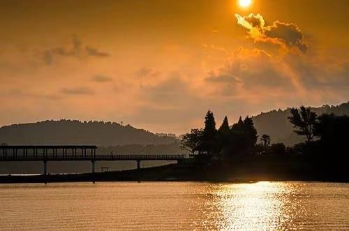 落日余晖映红了幽深宽广的湖面,给仙海湖披上了一件金灿灿的金色纱衣,像个羞答答的少女涨红了脸,碧波荡漾,一叶小舟载着中国梦我的梦,眺望远方,驶向理想的彼岸…